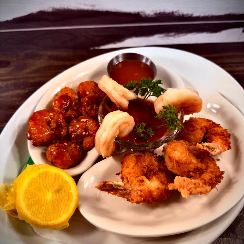 A combination of Classic Shrimp Cocktail, Big Bang Shrimp and Coconut Shrimp.